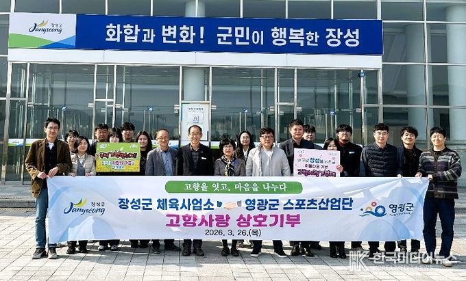 [ 한국미디어뉴스 이종철 기자 ] 장성군 체육사업소와 영광군 스포츠산업단이 최근 장성 홍길동체육관에서 상호 고향사랑기부를 실천했다.