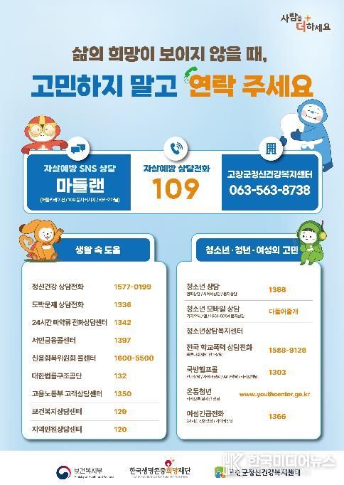 [ 한국미디어뉴스 이종철 기자 ] 자살률이 급증하는 봄철을 대비하여, 고창군이 자살 예방을 위한 집중관리 및 홍보 강화에 나선다.