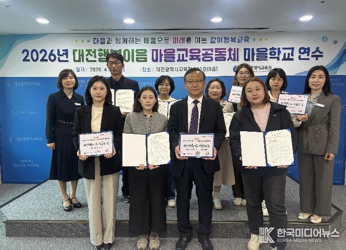 [ 한국미디어뉴스 이원영 기자 ] 대전시교육청은 4월 22일, ‘2026년 대전행복이음 마을교육공동체’에 선정된 마을학교 및 씨앗동아리 운영자들을 대상으로 역량 강화 연수를 실시했다고 밝혔다.