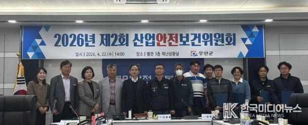 [ 한국미디어뉴스 이종철 기자 ] 무안군은 지난 22일 군 재난상황실에서 근로자의 산업재해 예방과 안전한 근무환경 조성을 위한 ‘2026년 제2회 산업안전보건위원회 정기회의’를 개최했다고 밝혔다.