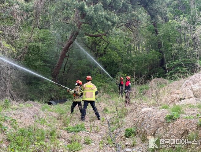 훈련은 산불전문진화대와 산불 진화 가용장비를 모두 투입해 산불 진압 대응 전술을 펼쳤으며 산불 발생에 대비해 실질적 진화 능력을 배양했다.