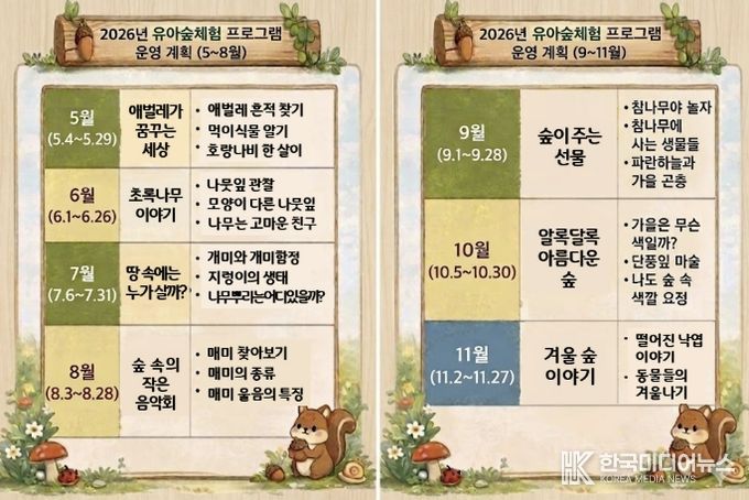 한편, 유아숲체험원 프로그램은 4월부터 11월까지 운영되며 성주산 둥지(소사), 원미산 산울림(원미), 은데미(오정) 등 3개 유아숲체험원에서 진행된다. 회당 20명 이내 소규모로 운영해 안전성과 체험 집중도를 높이며 운영시간은 오전 9시 30분부터 11시 30분까지 2시간, 참가비는 무료다.