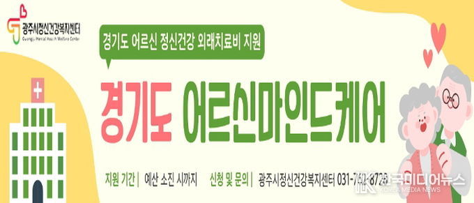 [ 한국미디어뉴스 이보영 기자 ] 광주시정신건강복지센터는 지역 내 어르신의 정신건강 증진과 치료 접근성 강화를 위해 ‘2026년 어르신 마인드 케어 치료비 지원 사업’을 추진 중이라고 23일 밝혔다.