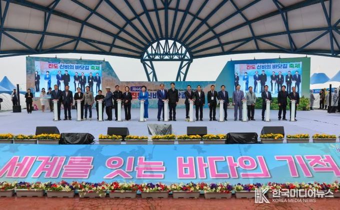 [ 한국미디어뉴스 이종철 기자 ] 진도군이 17일부터 20일까지 4일간 고군면 회동리 일원과 진도읍 철마공원에서 개최한 ‘제46회 진도 신비의 바닷길 축제’에 약 9만 명의 관광객이 방문하며, 축제가 성황리에 마무리됐다.