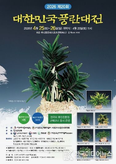 [ 한국미디어뉴스 이원영 기자 ] 화순군은 오는 4월 25일부터 26일까지 이틀간 ‘2026 제20회 대한민국 풍란대전’을 개최한다고 밝혔다.