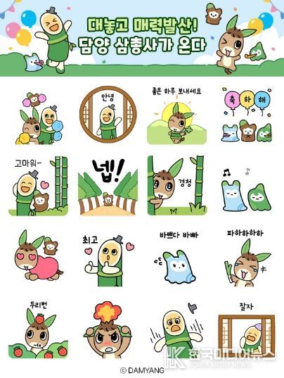[ 한국미디어뉴스 이종철 기자 ] 전남 담양군이 오는 27일 오후 2시부터 29일까지 3일간 담양군청 공식 카카오톡 채널을 통해 신규 관광캐릭터 ‘담나귀, 대쪽이, 메티’를 활용한 이모티콘 16종을 선착순 2만 5,000명에게 무료 배포한다.