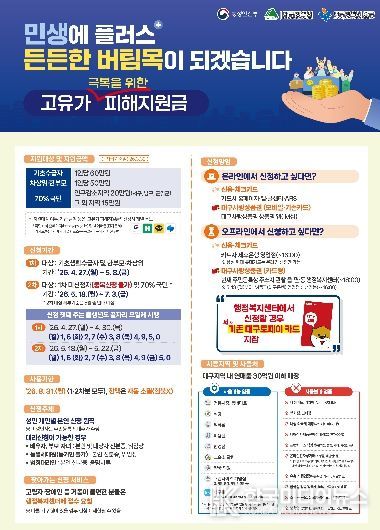 [ 한국미디어뉴스 이보영 기자 ] 대구 중구는 중동전쟁 발 고유가·고환율·고물가로 인한 구민의 경제적 부담을 덜고 취약계층을 지원하기 위해 ‘고유가 피해지원금’ 신청을 접수한다.