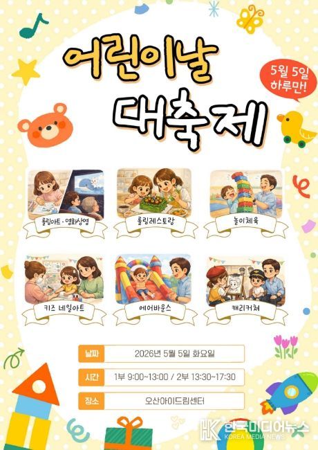 [ 한국미디어뉴스 이보영 기자 ] 오산시가 운영하는 오산아이드림센터가 어린이날을 맞아 온 가족이 함께 즐길 수 있는 특별 체험행사를 마련한다.