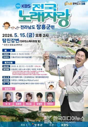 [ 한국미디어뉴스 이종철 기자 ] 장흥군은 KBS ‘전국노래자랑’ 장흥군편을 개최하고 지역 홍보와 축제 분위기 확산에 나선다.