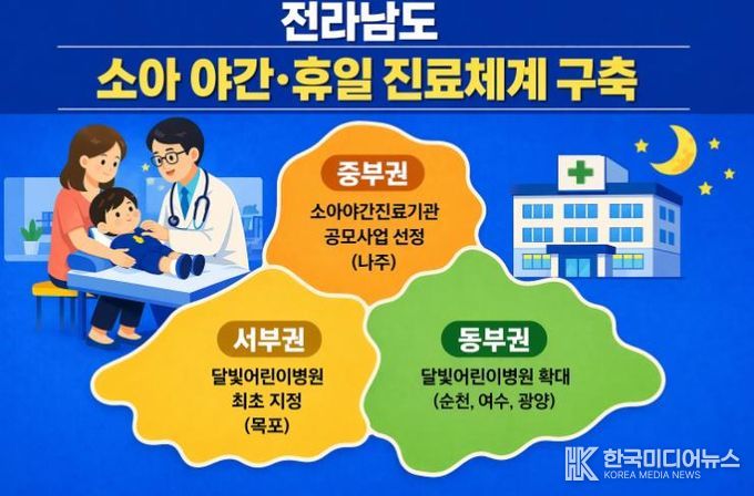 정광선 전남도 보건복지국장은 “아이를 키우는 부모 입장에서 가장 걱정되는 순간이 밤에 아플 때인데, 걱정을 조금이나마 덜어드리게 됐다”며 “앞으로도 도민이 체감할 소아 진료 환경을 지속해서 강화하겠다”고 말했다.