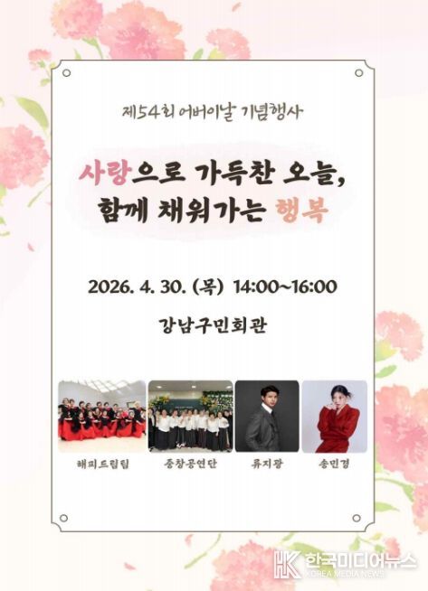 [ 한국미디어뉴스 이보영 기자 ] 꿈이 모이는 도시, 미래를 그리는 강남구가 제54회 어버이날을 맞아 4월 30일 오후 2시부터 4시까지 강남구민회관에서 기념행사를 개최하고, 5월 8일에는 7개 노인복지관에서 다채로운 행사를 이어간다.