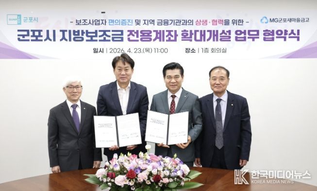 하은호 군포시장은 “이번 협약은 지방보조금 전용계좌 개설 금융기관을 확대하여 보조사업자의 이용 편의를 제고하고, 지역 금융기관과의 상생 협력 기반을 강화하는 데 의의가 있다”며 “앞으로도 관련 제도 개선과 운영체계 고도화를 통해 지방보조금 관리의 투명성과 효율성을 지속적으로 강화해 나가겠다”고 밝혔다.