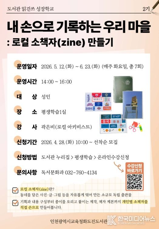 이번 프로그램은 5월 12일부터 6월 23일까지 매주 화요일, 총 7회에 걸쳐 운영되며, 참가자들은 인천 중구와 동구 지역을 자신만의 시선으로 관찰하고 그 과정에서 발견한 삶의 이야기를 글, 사진, 그림 등 다양한 매체를 활용해 직접 한 권의 소책자로 제작해 보는 특별한 경험을 하게 된다.