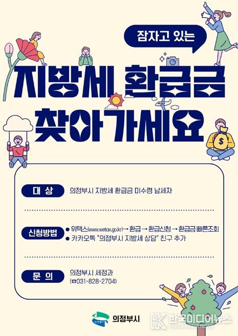 [ 한국미디어뉴스 기자 ] 의정부시는 납세자가 아직 찾아가지 않은 지방세 환급금을 돌려주기 위해 5월 말까지 ‘지방세 환급금 일제정리 기간’을 운영한다.