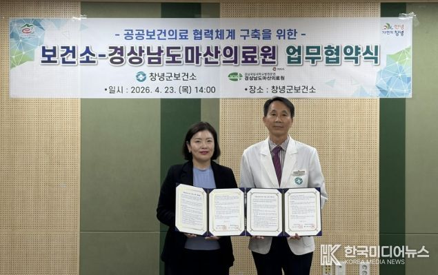 [ 한국미디어뉴스 최정화 기자 ] 창녕군은 23일, 경상남도 마산의료원과 지역 주민의 건강 증진과 공공보건의료 서비스 강화를 위한 업무협약(MOU)을 체결했다.