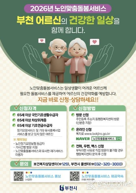 부천시 관계자는 “돌봄이 필요한 어르신을 적극 발굴해 필요한 서비스를 적시에 제공하겠다”며 “지역사회 중심의 돌봄 체계를 지속 강화해 나가겠다”고 말했다.