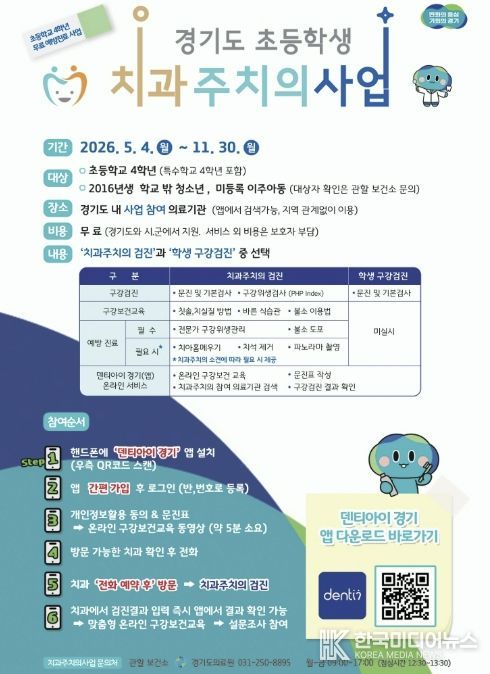 [ 한국미디어뉴스 김서안 기자 ] 포천시보건소는 지역 내 아동의 구강건강 관리를 강화하기 위해 오는 5월 4일부터 11월 30일까지 ‘초등학생 치과주치의사업’을 추진한다.