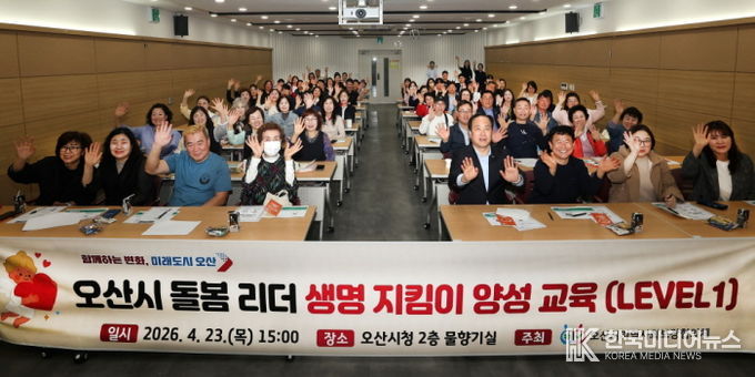 [ 한국미디어뉴스 이보영 기자 ] 오산시는 지난 23일 오후 3시 시청 물향기실에서 오산시지역사회보장협의체 위원 60여 명을 대상으로 ‘2026년 오산시 지역리더 생명지킴이 교육’을 실시했다고 밝혔다.