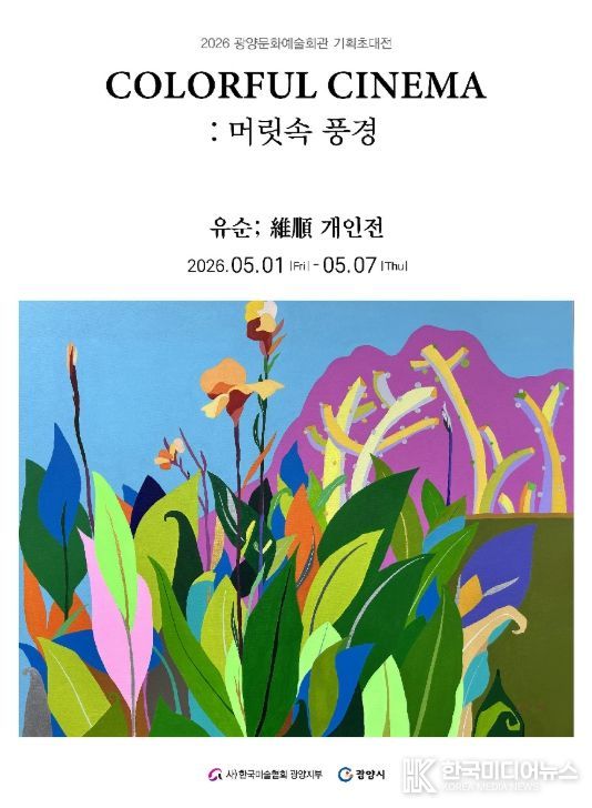 [ 한국미디어뉴스 이종철 기자 ] 광양시는 오는 5월 1일부터 7일까지 광양문화예술회관 제1전시실에서 올해 첫 기획전시 ‘컬러풀 시네마(COLORFUL CINEMA)-머릿속 풍경’을 연다고 밝혔다.