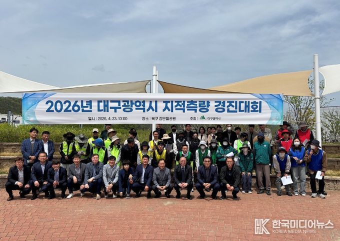 [ 한국미디어뉴스 이원영 기자 ] 대구광역시는 4월 23일 북구 검단들공원에서 9개 구·군 지적공무원들이 참여하는 ‘2026년 지적측량 경진대회’를 개최했다. 이번 대회 결과, 중구가 최우수상의 영예를 안았으며, 북구와 동구가 각각 우수상과 장려상을 받았다.