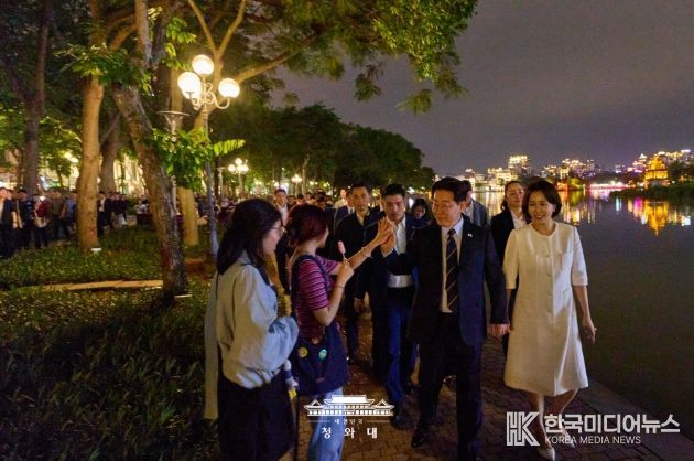 이어 이 대통령 부부는 인근 식당으로 자리를 옮겨 쌀국수와 볶음밥으로 저녁 식사를 함께했다. 이후 호안끼엠 호수 일대를 산책하며 베트남에서의 소중한 추억을 쌓았으며, 산책을 마친 뒤에는 베트남 국민들에게 다시 한번 손을 흔들어 인사를 전하며 일정을 마무리했다.