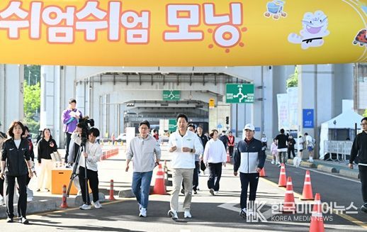 [ 한국미디어뉴스 이원영 기자 ] 오세훈 서울시장은 26일 아침 ‘2026 차 없는 잠수교 뚜벅뚜벅 축제’ 부대 행사로 열린 ‘쉬엄쉬엄 모닝’에 참여했다.