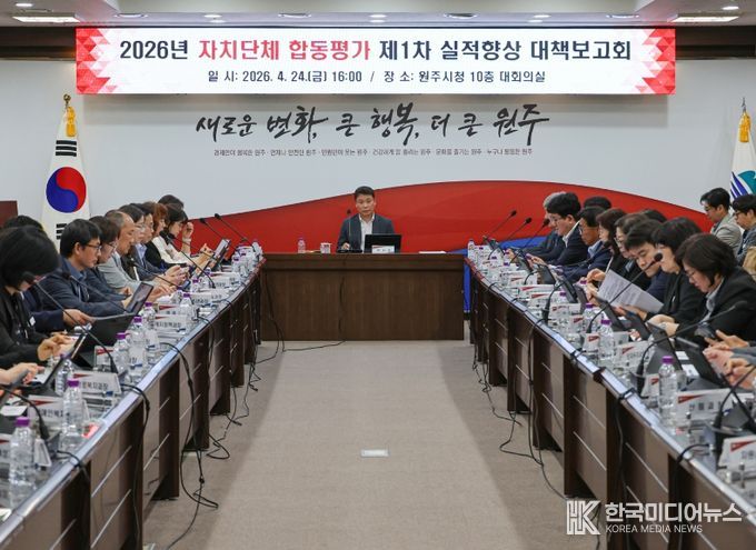 [ 한국미디어뉴스 이원영 기자 ] 원주시는 지난 24일 시청 대회의실에서 ‘2027년(2026년 실적) 자치단체 합동평가 실적향상 대책보고회’를 개최했다.