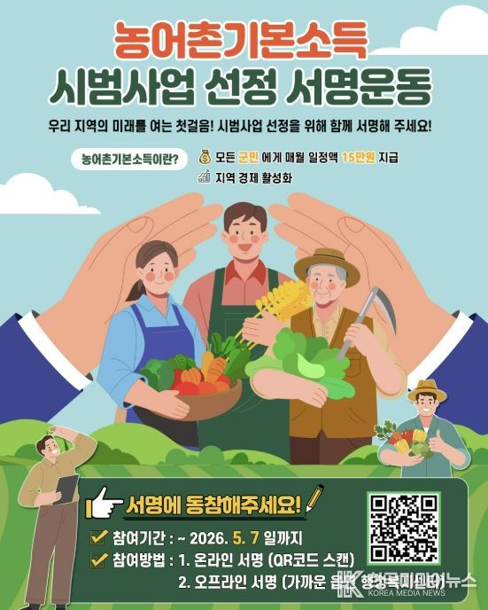 신미선 기획홍보과장은 "농어촌기본소득 시범사업 선정은 우리 지역의 미래를 여는 첫걸음"이라며 "지역의 내일을 바꾸는 서명운동에 적극 참여를 부탁드린다"고 말했다.