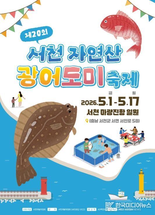 [ 한국미디어뉴스 이원영 기자 ] 서천군은 오는 5월 1일부터 17일까지 마량진항 일원에서 ‘제20회 서천 자연산 광어·도미 축제’를 개최한다.