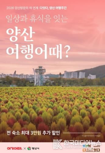 [ 한국미디어뉴스 김홍철 기자 ] 양산시는 ‘2026 양산방문의 해’를 맞아 당일형 관광에 치중된 여행 패턴을 관내에서 하룻밤 머무는 ‘체류형 관광’으로 전환하면서 지역 관광 산업에 활력을 불어넣기 위해 추진한 숙박 할인 프로모션 ‘다잇다, 양산 여행주간’이 관광객들의 높은 이용률 속에 개시 일주일 만에 종료됐다고 밝혔다.