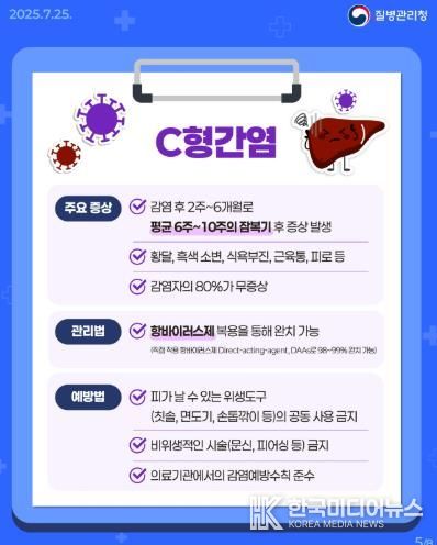 C형간염은 혈액·체액을 통해 전파되는 바이러스성 감염병으로, 방치하면 간경변증이나 간암으로 진행될 위험이 크다.
