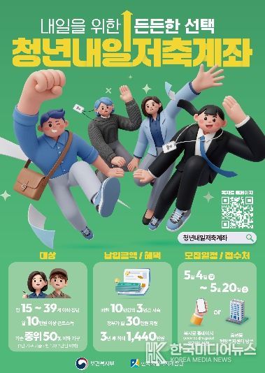 ‘청년내일저축계좌’는 일하는 청년이 3년간 매월 10만 원 이상을 저축하면 정부가 매월 30만 원을 추가로 적립해 주는 사업이다. 만기 시 최대 1,080만 원의 정부 지원금을 받을 수 있다.