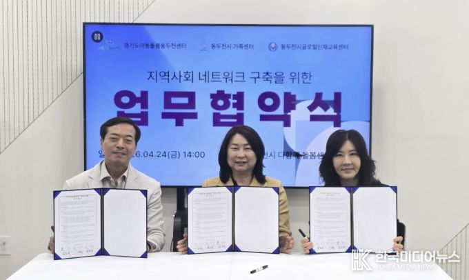 [ 한국미디어뉴스 김서안 기자 ] 동두천시글로벌인재교육센터는 지난 24일 동두천시가족센터, 동두천시다함께돌봄센터1호점(경기도아동돌봄동두천센터)과 함께 지역사회 네트워크 구축을 위한 3자 간 업무협약(MOU)을 체결했다고 밝혔다.