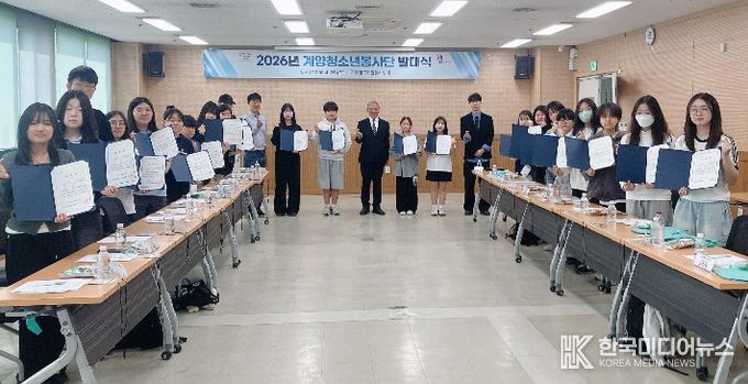 [ 한국미디어뉴스 황영수 기자 ] 인천 계양구자원봉사센터는 25일 구청 신비홀에서 지역 내 중·고등학생 24명이 참여한 가운데 ‘2026 계양청소년봉사단’ 발대식을 개최했다.