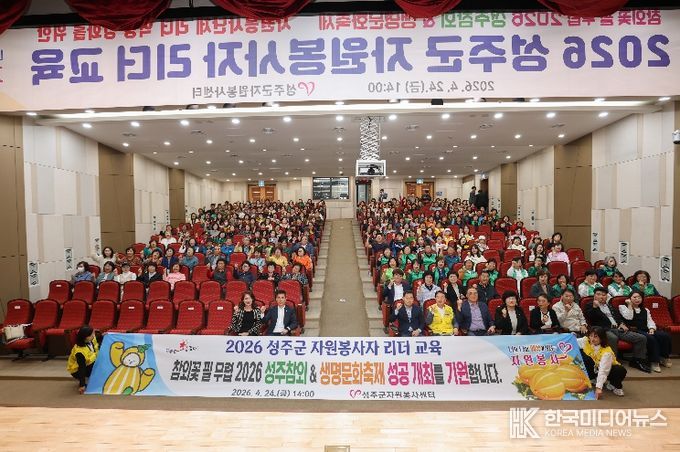 [ 한국미디어뉴스 이보영 기자 ] 경북 성주군자원봉사센터(센터장 이명진)는 지역 공동체의 따뜻한 변화를 이끄는 자원봉사 리더들을 한자리에 모아 의미 있는 교육의 장을 마련했다. 4월 24일 성주군청 대강당에서 열린 '2026 성주군 자원봉사자 리더 교육'은 단순한 역량 강화 교육을 넘어 나눔과 연대의 가치를 되새기고, 다가오는 지역 대표 축제를 함께 준비하는 결속의 자리로 깊은 울림을 전했다.