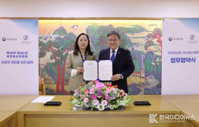 [ 한국미디어뉴스 이원영 기자 ] 국가유산청은 저스피스재단과 4월 24일 오후 2시 국립고궁박물관(서울 종로구)에서 제48차 유네스코 세계유산위원회 회의(48th Session of the World Heritage Committee)의 성공적 개최를 위한 업무협약을 체결했다.