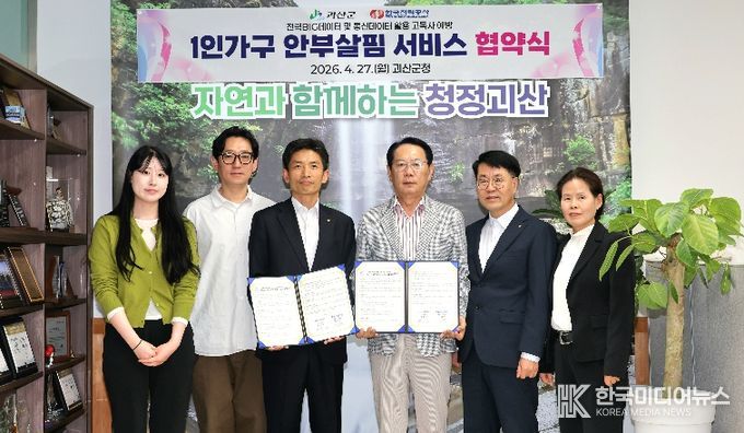 [ 한국미디어뉴스 김풍옥 기자 ] 충북 괴산군은 군청 집무실에서 한국전력공사증평괴산지사와 1인가구 안부살핌 서비스 업무협약(MOU)을 체결했다고 27일 밝혔다.