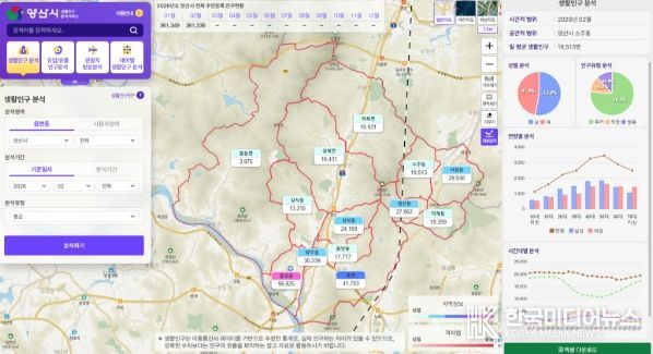 [ 한국미디어뉴스 김홍철 기자 ] 양산시가 시민 누구나 지역 인구 흐름을 확인할 수 있는 ‘양산시 생활인구 분석 서비스’를 구축해 공개했다.