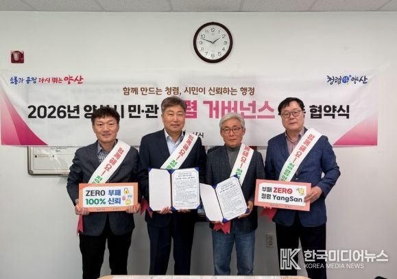 [ 한국미디어뉴스 김홍철 기자 ] 양산시 상하수도사업소 수도과는 청렴에 대한 사회적 관심을 유도하고 청렴의식을 확산하기 위해 관내 수도급수공사 대행 지정업체와 함께 민관 청렴 거버넌스를 구성하고, 이를 위한 협약식을 가졌다.
