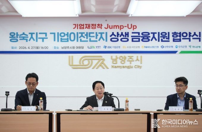[ 한국미디어뉴스 이원희 기자 ] 남양주시는 27일 왕숙신도시 개발로 이전이 필요한 기업의 안정적 재정착을 지원하기 위해 ‘왕숙신도시 기업재정착 점프업(Jump-up) 상생금융’ 업무협약을 체결했다고 밝혔다.