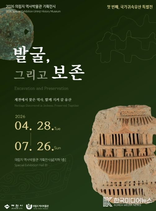 [ 한국미디어뉴스 김풍옥 기자 ] 제천시 의림지 역사박물관은 오는 4월 28일부터 7월 26일까지 상반기 기획전시 『발굴, 그리고 보존 - 제천에서 찾은 역사, 함께 지켜 갈 유산』을 박물관 지하 1층 기획전시실에서 개최한다.