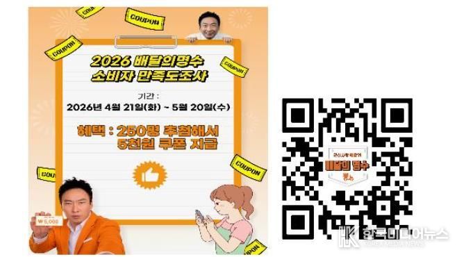군산시는 오는 5월 20일까지 ‘배달의명수’ 이용 소비자와 가맹점을 대상으로 서비스 이용 만족도 및 개선사항 파악을 위한 설문조사를 진행하고 있다고 밝혔다.