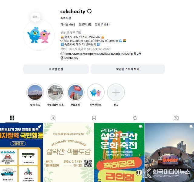 [ 한국미디어뉴스 이원영 기자 ] 속초시가 공식 사회관계망서비스(SNS)를 활용해 시민과 관광객에게 한 걸음 더 가까이 다가선 홍보를 꾸준히 진행하며 성과를 거두고 있다.