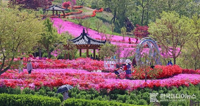 특히, 4월중순부터 본격 개화한 꽃잔디는 대지를 뒤덮은 분홍빛 융단을 깔아 놓은 듯한 장관을 연출하고 있으며, 이어 개화를 시작한 철쭉은 선명한 색감으로 공간의 깊이를 더해 방문객들의 감탄을 자아내고 있다.