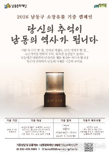 남동문화재단은 소래역사관을 중심으로 ‘2026 남동구 소장유물 기증 캠페인’을 오는 4월 20일부터 연중 상시 운영한다고 28일 밝혔다.