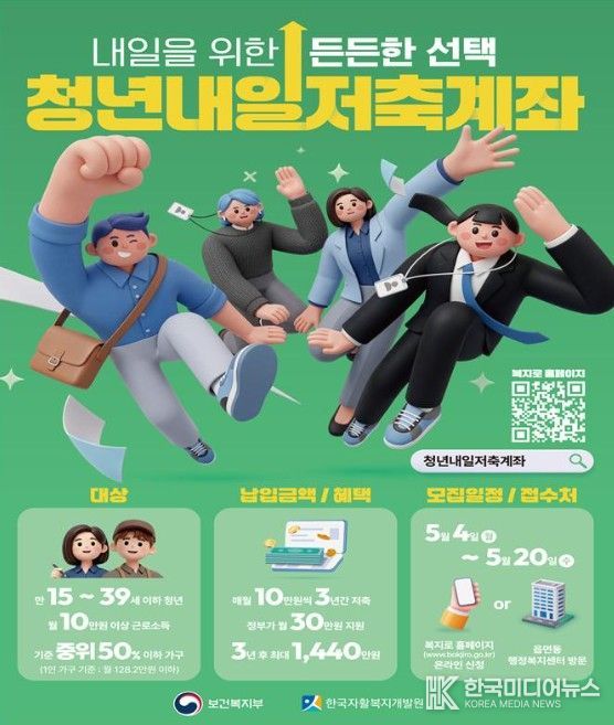 [ 한국미디어뉴스 이원영 기자 ] 서귀포시는 일하는 저소득 청년의 자립기반 마련을 지원하기 위해 5월 4일부터 5월 20일까지 ‘청년내일저축계좌’ 신규가입자를 모집한다.