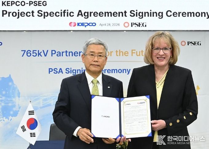 [ 한국미디어뉴스 이종철 기자 ] 한국전력이 4월 28일 서울 양재동 한전 아트센터에서 미국 에너지기업 PSEG社와 765kV 초고압 송전망 사업 협력을 위한 계약을 체결했다.
