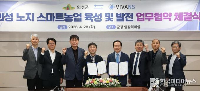 [ 한국미디어뉴스 이보영 기자 ] 의성군은 28일 군청 영상회의실에서 스마트농업 솔루션 전문기업 ㈜비바엔에스(대표이사 김영식)와 ‘노지 스마트농업 육성 및 발전을 위한 업무협약(MOU)’을 체결했다고 밝혔다.