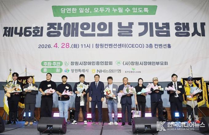 [ 한국미디어뉴스 이원영 기자 ] 창원특례시는 28일 창원컨벤션센터 컨벤션홀에서 장애인 등 1,100여명이 참석한 가운데 ‘제46회 장애인의 날 기념식’을 성황리에 개최했다고 밝혔다.