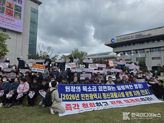 [한국미디어뉴스 이원영 기자] 4월 28일, 인천광역시 관내 정신재활시설 16개소 전 종사자와 정신질환 당사자, 그 가족 등 약 200명이 참석한 가운데 ‘2026년 인천광역시 정신재활시설 운영 지원 안내’(이하 ‘지원 안내’) 폐지와 전면 재검토를 요구하는 권리 행동 대회가 개최되었다.